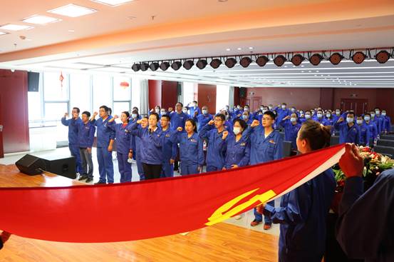 公司党委委员杨俊萍同志宣读了《对接收李艳蓉等13名同志为中共预备党员的审批意见》,并带领13名预备党员面对党旗宣誓,全体党员跟随重温入党誓词。此次入党宣誓仪式,既是对建党100周年的纪念,也是对全体党员的一次深刻党性教育。