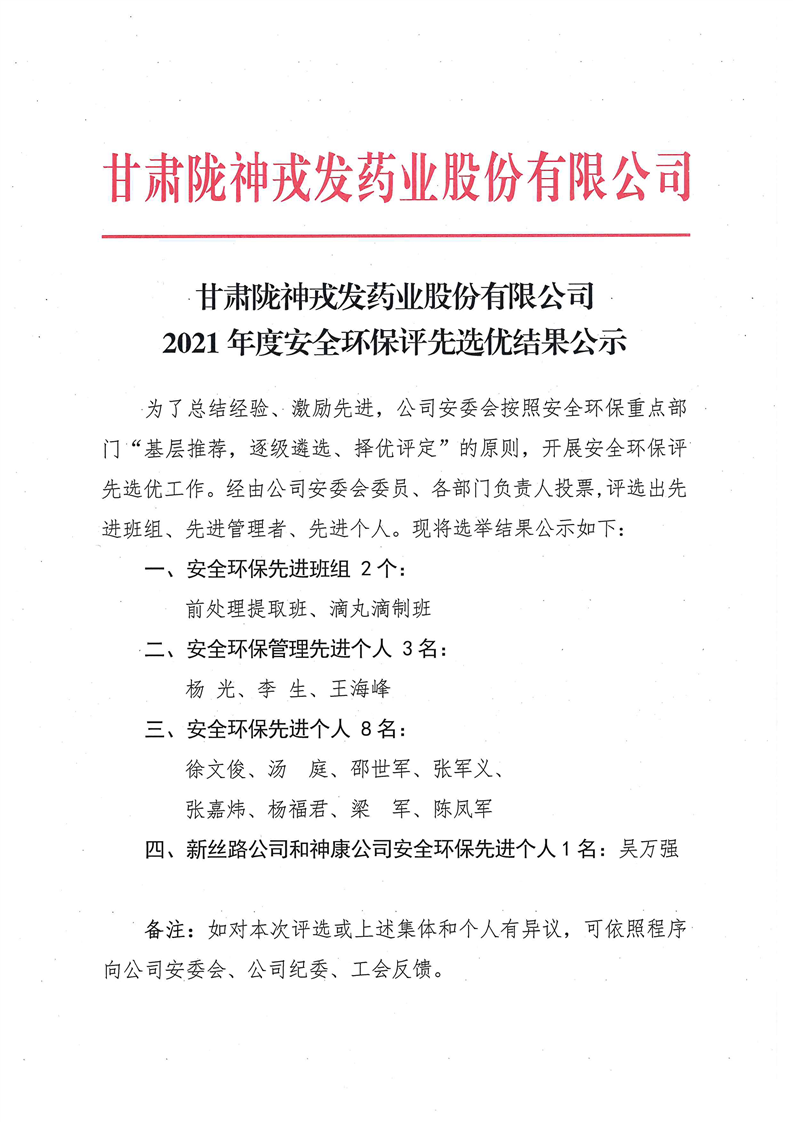 2021年度安全环保评先选优结果公示