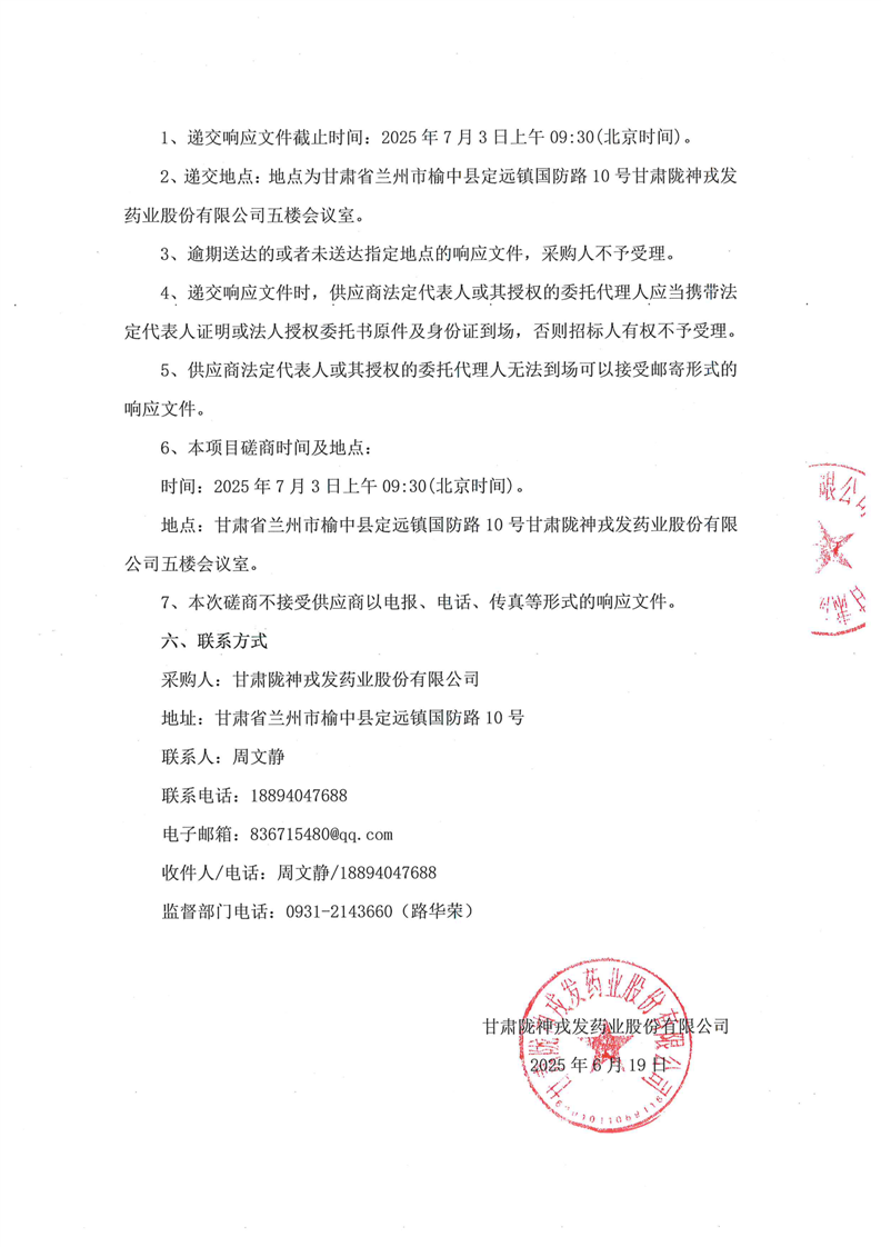甘肃陇神戎发药业股份有限公司元胡止痛滴丸长期毒性研究项目竞争性磋商公告