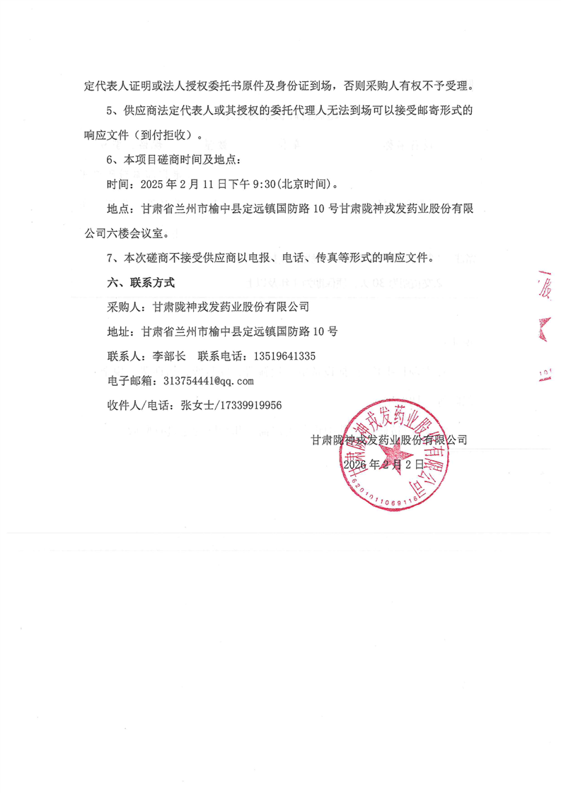 甘肃陇神戎发药业股份有限公司超微粉碎机采购竞争性磋商公告