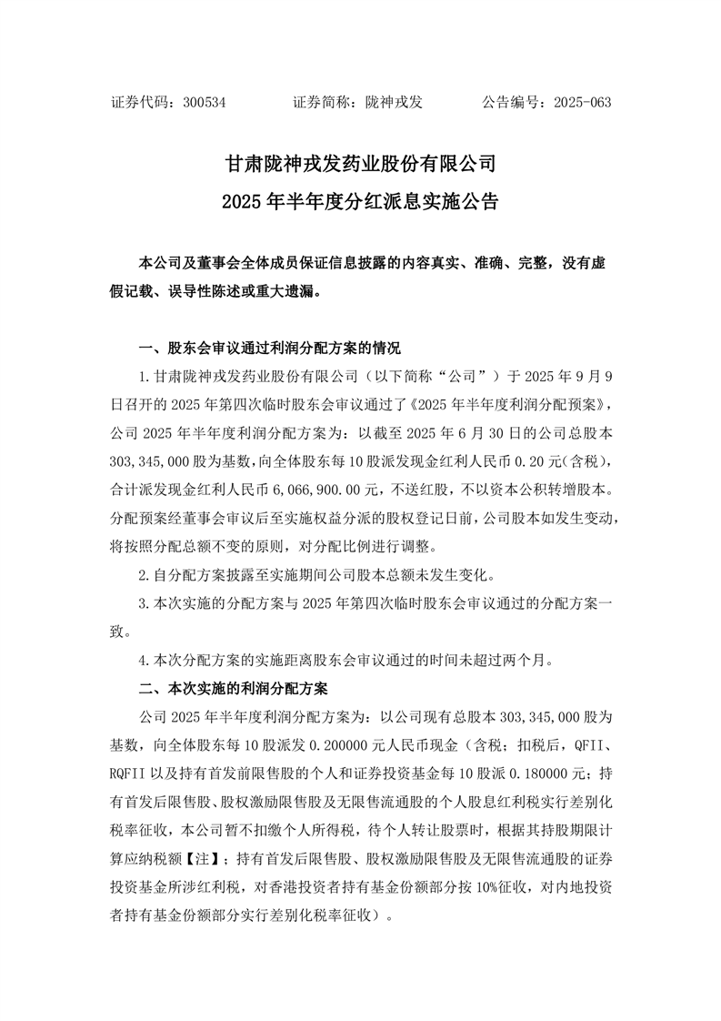 2025年半年度分红派息实施公告
