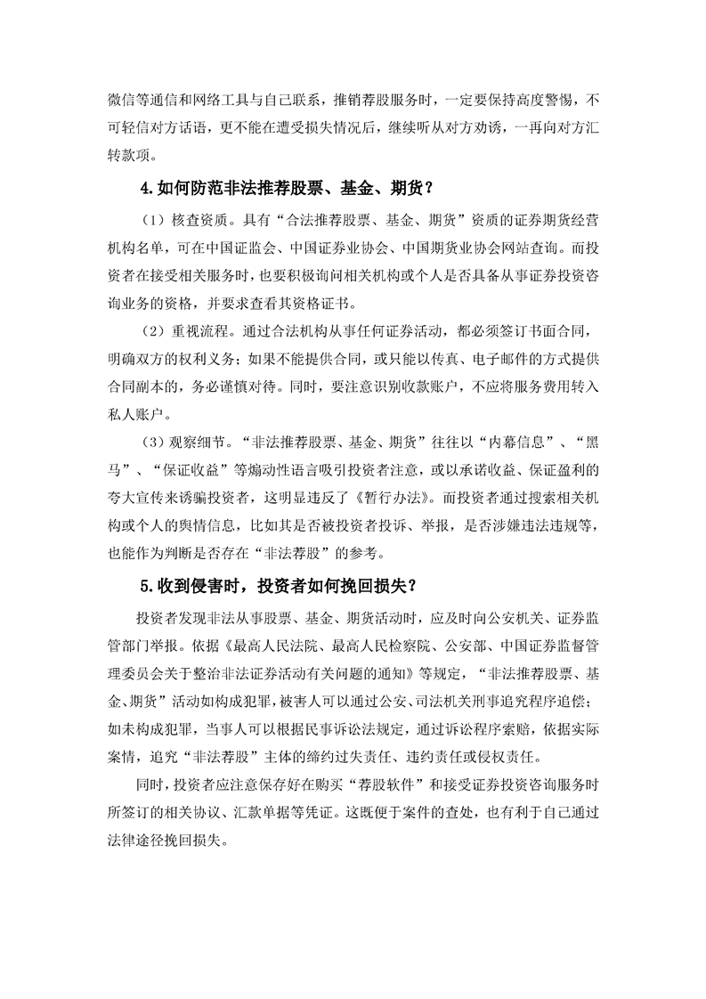 防范非法推荐股票、基金、期货